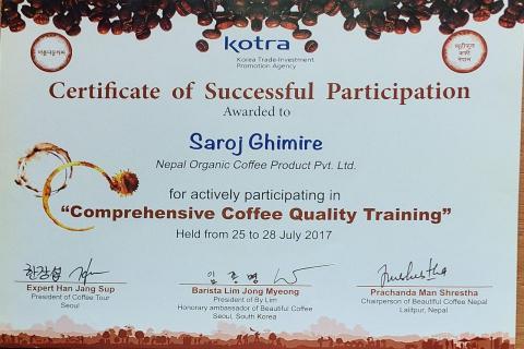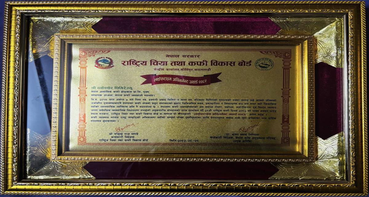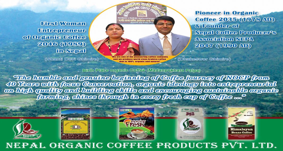 Nepal Organic Coffee Product (NOCP) is one of Nepal’s pioneering and leading organic coffee companies. It was registered as a cottage/small industry in Palpa in 2052 BS (1995 AD) and founded as a women-led enterprise by Shanti Devi Ghimire. Although the company began its coffee plantation in 2035 BS (1978 AD), it started processing coffee in 2046 BS (1989 AD). It is now operating as a private limited company.